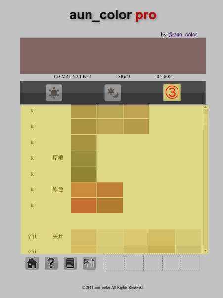 ③ 月のボタンを押すと、中央の色相・場と右側の月のグループが拡大表示されます。